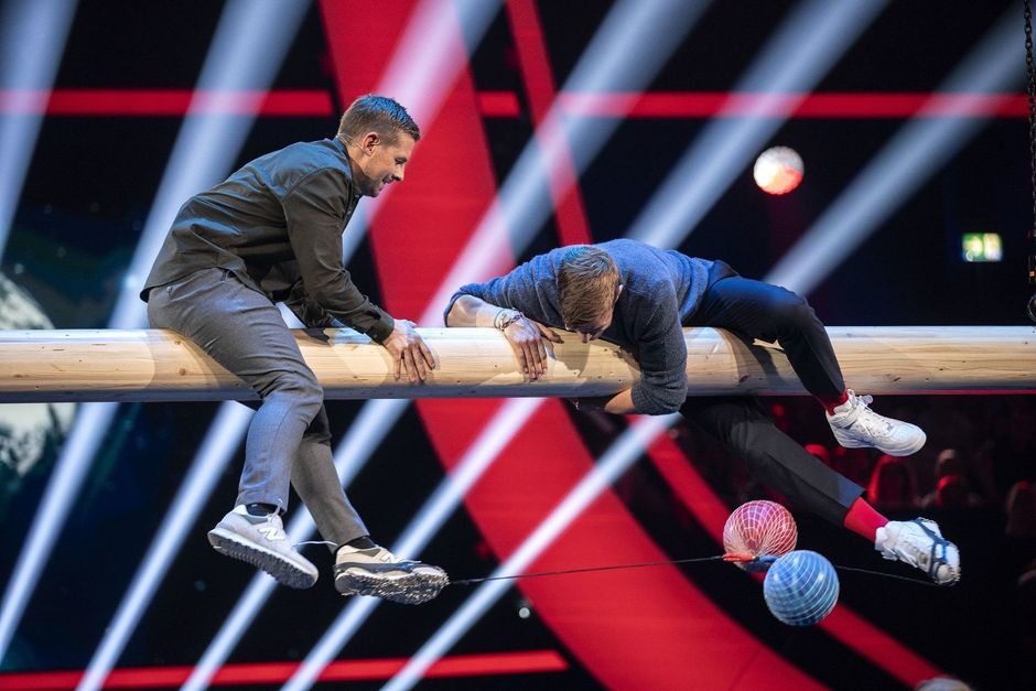 Alle Fans können sich wieder beruhigen: Der Spielname ist nämlich ein bisschen irreführend, tatsächlich geht es beim "Füßeln" eher darum, sich gegenseitig von einem Pfahl zu kicken und zu prügeln. Besonders perfide: Ohne Rücksicht auf Jokos Höhenangst befindet sich der ganze Spielaufbau in unentspannten 2m Höhe. Kann der arme Mann sich da nicht irgendwie aus der Affäre ziehen...?!