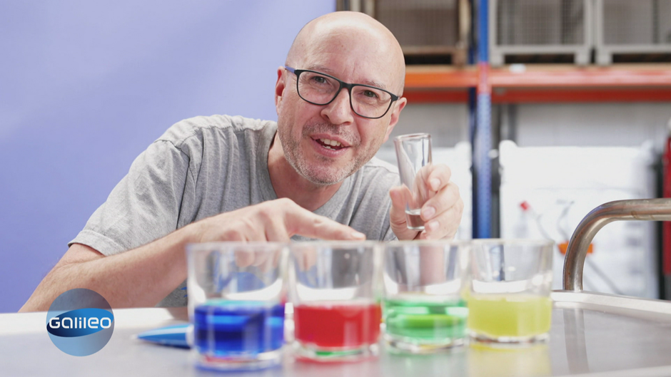 "Galileo"-Reporter Matthias Fiedler wagt sich an ein spannendes Experiment mit Wasser, Puderzucker und Lebensmittelfarbe.