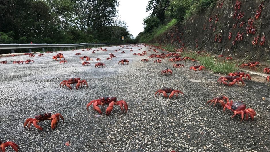 Auf Christmas Island färben sich die Straßen aktuell leuchtend rot. Millionen rote Krabben sind unterwegs. Wie jedes Jahr beginnt auf der Insel vor der Küste Westaustraliens ihre große Wanderung zum Meer.