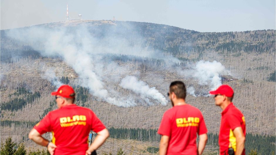 Im Harz lodert ein Brand in der Nähe des Brockens. Das Gebiet ist zerklüftet und schwer zugänglich. Aber es gibt positive Nachrichten.
