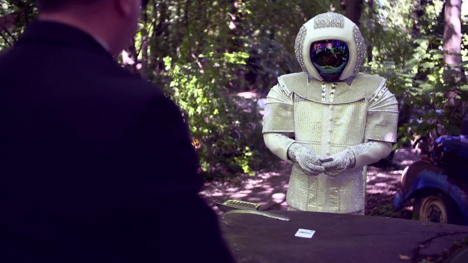 Der Astronaut wirft viele Fragen auf. Neben seiner unglaublichen Stimme spielt der Mann im Glitzeranzug auch noch gerne Karten. Quartett, um genau zu sein. Was das wohl bedeuten mag?