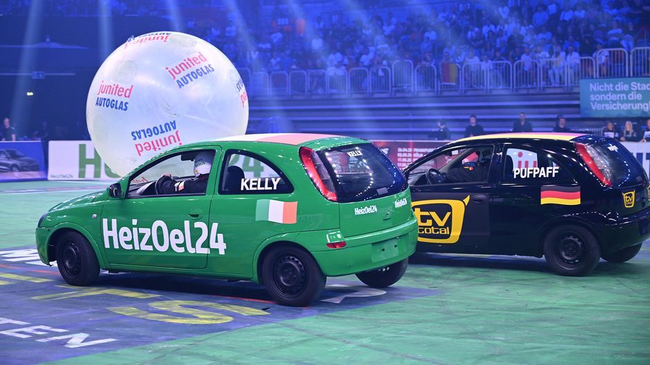 Finale, oooh: Das spannende Duell der Giganten - Puffi will den Autoball EM-Titel unbedingt nach Deutschland holen, doch die Rechnung hat er ohne Joey Kelly gemacht.