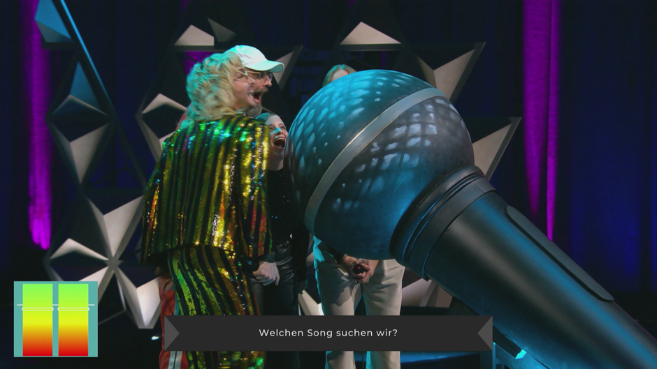 Hier trifft exquisite Live-Musik auf grässliches Geschrei. Bill, Jasna und Sido müssen die gesuchten Songs herbeikrakeelen, sprich: ihr müsst die Lautstärke eures Fernsehers runterdrehen.